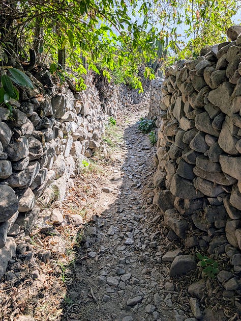 They are clearly proud of their land and are determined to make a go of it. There were craft vendors, ice cream stands, and restaurants, but it was not just a place for tourists. It was clearly a functioning community. As we walked back, I noticed a woman washing clothes or dishes in her open-air kitchen. Newly washed laundry was hanging from a line above her head. I wished I could have seen her home. Her view overlooked the trail to Moyalán.