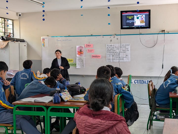 The school year in Peru runs from March to December, with a two-week winter break in July. During my visit, the weather hovered around 61 degrees, and the sun set by 7 p.m.