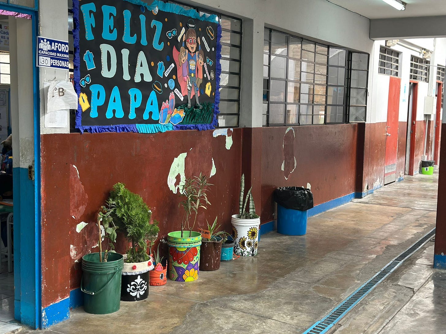 I.E. 1217 Jorge Basadre sits just off the main road in the heart of Chaclacayo. There is no designated parking lot, although space outside the entrance allows for buses and families to drop off and pick up students. Local vendors line the sidewalk, selling breakfast in the mornings and snacks after school. Across from the front entrance is a small school store that sells uniforms and assorted clothing.